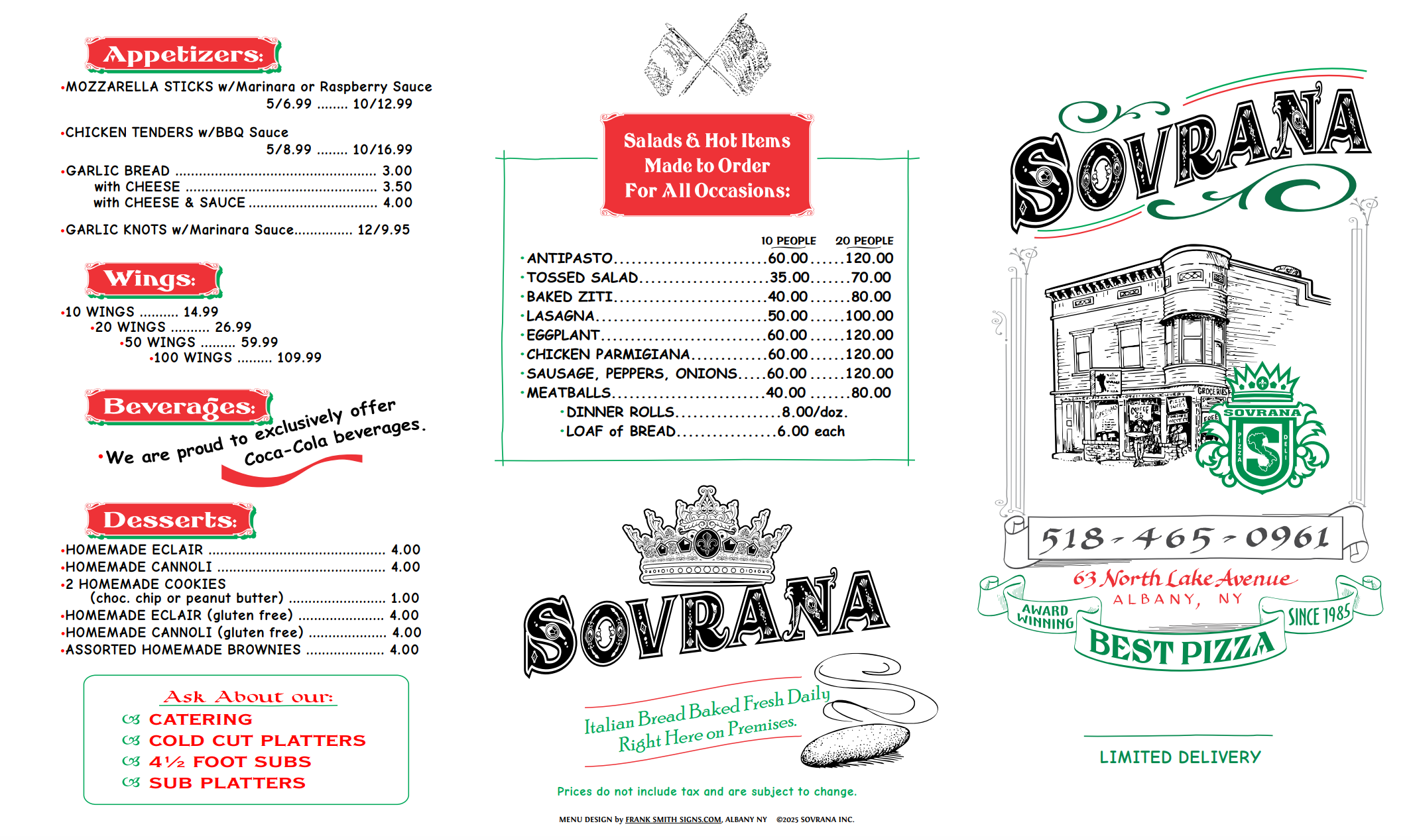 Our Pizzas are made to order just the way you like it! So give us a call or stop by our shop to pickup your Sovranas Signature Pie!